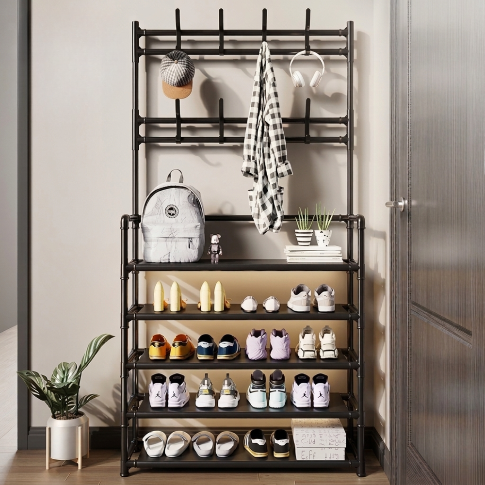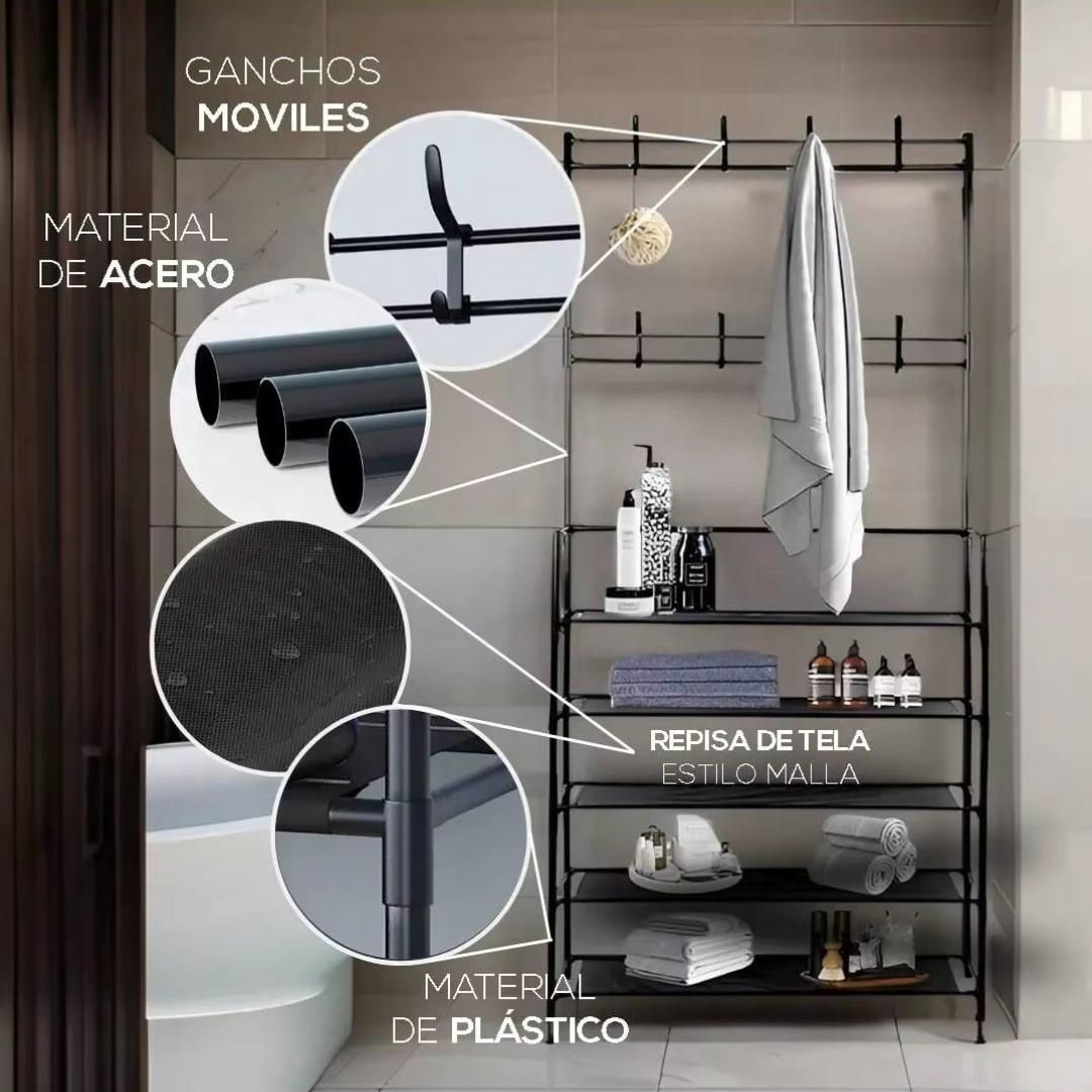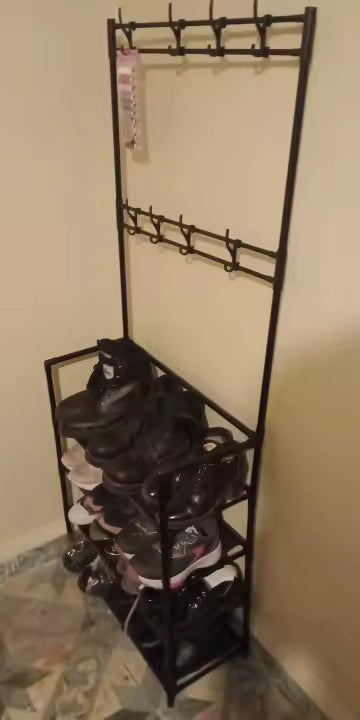 Organizador Multifuncional 3 en 1: Perchero, Zapatero y Estante